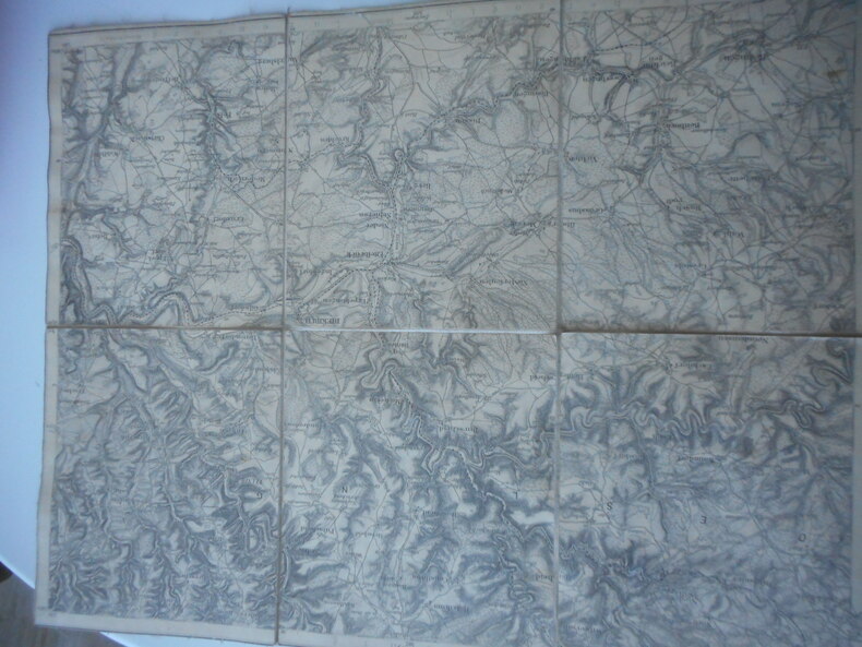 Carte d'etat major, rempliée et entoilée. Non datée. Dimension dépliée 38x30 cm. Bon état.