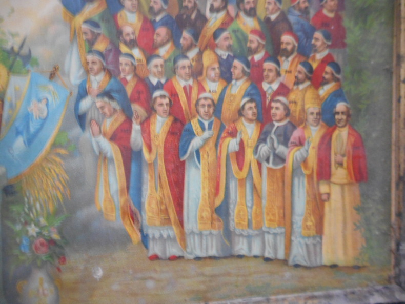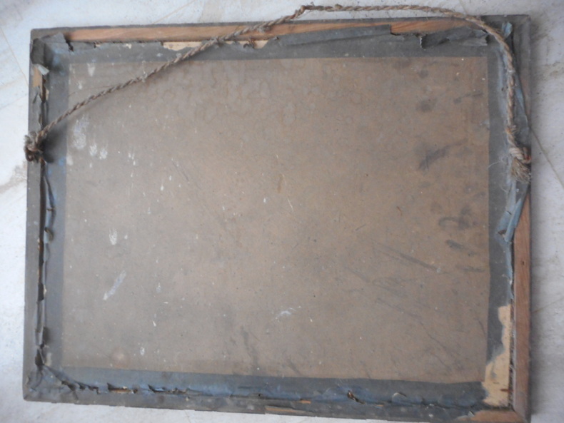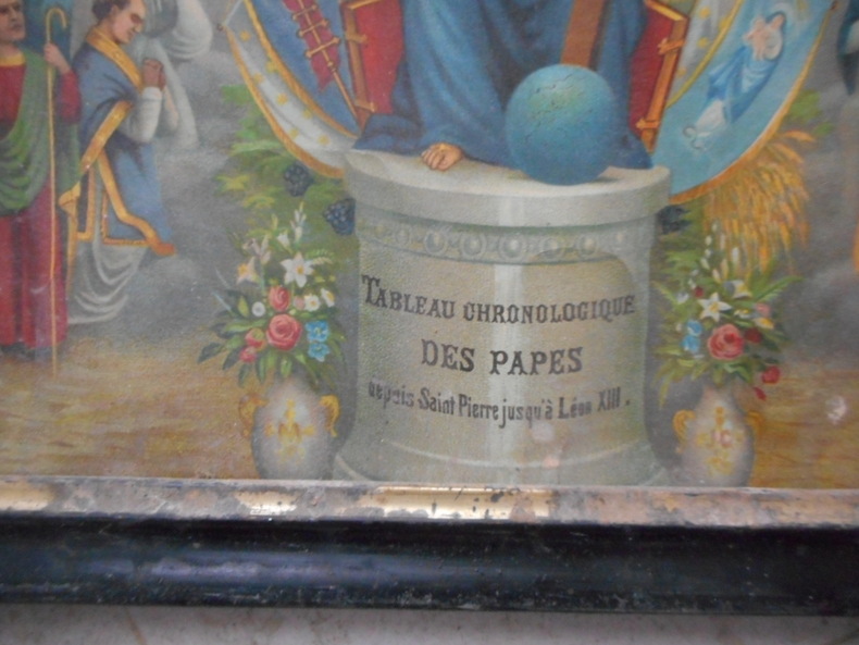 Chromolithographie encadrée, sans éditeur et sans date (Leon XIII est mort en 1903) dans un petit cadre de bois noir. Les couleurs sont intactes, le document ne presente pas de manque apparent, le cadre est en mauvais état mais d'époque.
