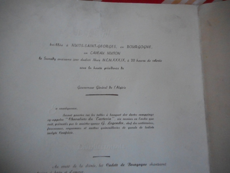 Grand menu illustré sur papier lourd, 4 pages au format 23x28 cm. Très bon état.