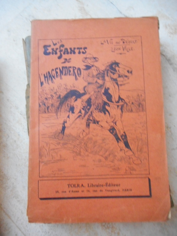 Paris, Tolra SIMONET, 1912.in-8, 155pp.-2ff. Broche, couverture illustree. "Les enfants de l"Hacendero est le dernier des 13 episodes de ""La Vie au Desert"", recit d"aventures ""exotiques"" pour la jeunesse. Illustrations a pleine page. -
