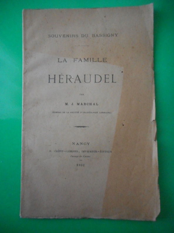 Nancy, tiré à part des mémoires de la "Société d'archéologie lorraine", 1892. Format 14x23 cm, broché, sur papier vergé, 14 pages. Tache d'insolation sur la couverture (voir la photo) sinon très bon état.