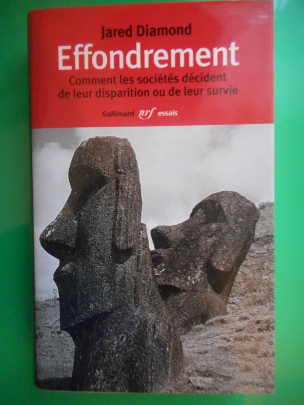 De cette étude comparée, et sans pareille, Jared Diamond conclut qu’il n’existe aucun cas dans lequel l’effondrement d’une société ne serait attribuable qu’aux seuls dommages écologiques. Plusieurs facteurs, au nombre de cinq, entrent toujours potentiellement en jeu : des dommages environnementaux ; un changement climatique ; des voisins hostiles ; des rapports de dépendance avec des partenaires commerciaux ; les réponses apportées par une société, selon ses valeurs propres, à ces problèmes. Cette complexité des facteurs permet de croire qu’il n’y a rien d’inéluctable aujourd’hui dans la course accélérée à la dégradation globalisée de l’environnement. Une dernière partie recense, pour le lecteur citoyen et consommateur, à partir d’exemples de mobilisations réussies, les voies par lesquelles il peut d’ores et déjà peser afin que, dans un avenir que nous écrirons tous, le monde soit durable et moins inéquitable aux pauvres et démunis. Voir le sommaire sur photos jointes.