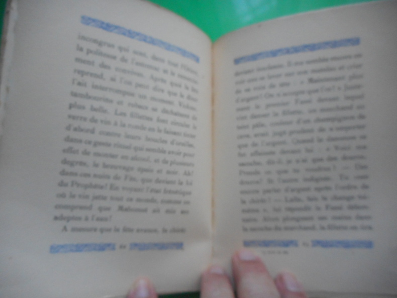 Envoi autographe de l'auteur à Pierre de Nolhac. Dans ce Maroc qu'ils connaissent si bien, les Tharaud ont choisi de nous peindre une ville, Fès, et dans cette ville, la bourgeoisie Fassi, riche, indolente, égoÏste, rituelle, attachée à ses traditions et que la civilisation européenne n'a pas encore réussi à pénétrer. Les Fassis usent volontiers de toutes les commodités de notre civilisation, mais cela ne change rien à leurs sentiments profonds. Ce sont ces sentiments-là que nous décrivent les Tharaud.Et dans ces pages fines et fortes, écrites avec cette pureté élégante et sobre qui fait le style classique, les fameux écrivains nous disent conment les Fassis vivent, pensent, aiment... et bavardent, à ces thés qu'ils appellent si joliment eux-mêmes « l'heure de la médisance ». (Extrait du prière d'insérer).