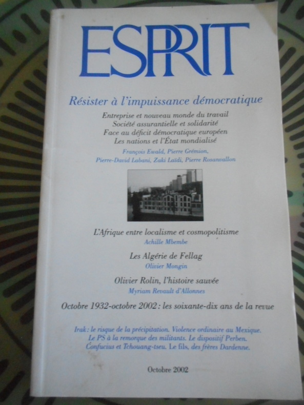Esprit, 2002. Format 15x24 cm, 220 pages. Très bon état.