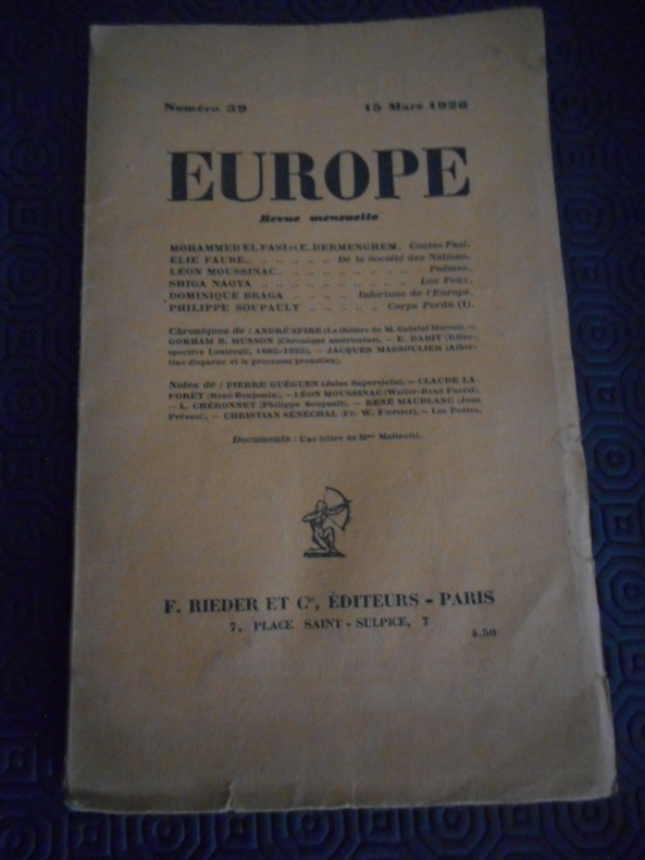 Rieder, 1926. Revue au format 14x23 cm. Bon état.
