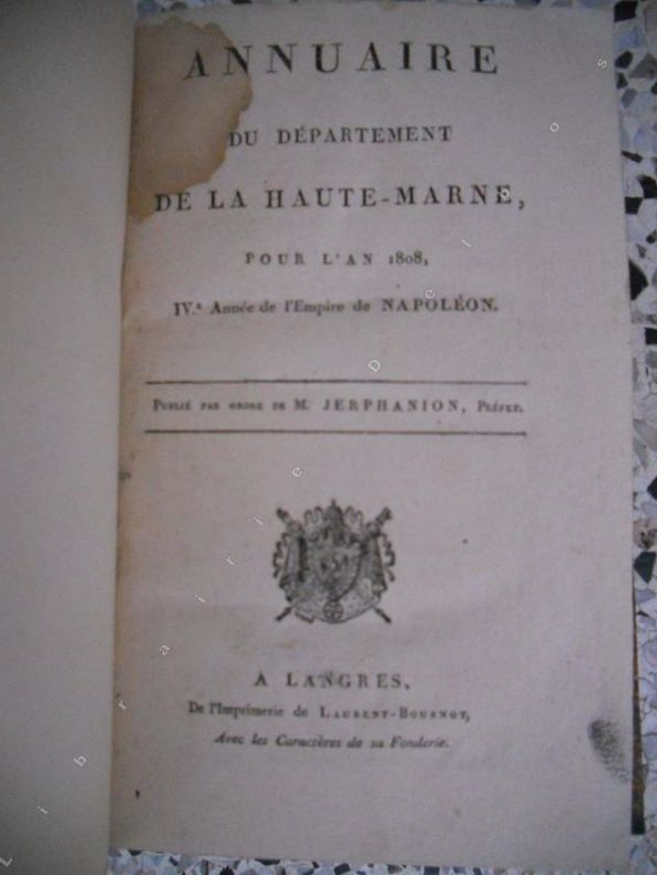 Laurent-Bournot a Langres, 1808. Format 14x22 cm, demi reliure a nerfs, piece de titre rapportee, 350 pages. Page de titre tachee.Bon etat.