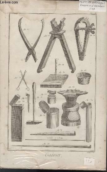 NON PRECISE. Non daté. In-12. Broché. Etat d'usage, Couv. convenable, Dos satisfaisant, Intérieur frais. 1 planches in folio contenant 15 gravures (numérotées de 25 à 40). Représentant les ouilts utilisés (pinces, ciseaux, marteau, boites, perforateur, enclume). Mouillures.. . . . Classification : 500-Gravures XVIIeme