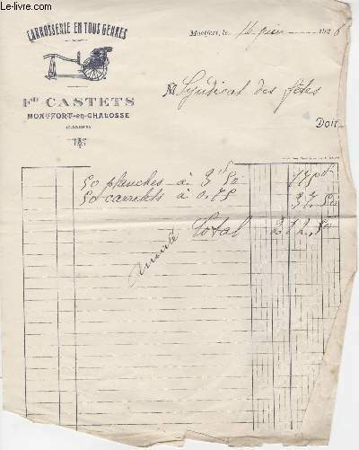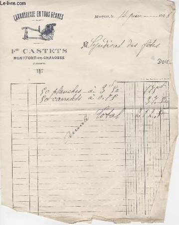 ***. 14-06-1928. In-12. Broché. Etat d'usage, Couv. convenable, Dos satisfaisant, Intérieur frais. 1 facture ancienne de 21,5 x 27cm.Illustré d'un dessin en noir et blanc sur le coin supérieur gauche représentatn une charette. Bords abîmés.. . . . Classification : 200-Affiches Corrida