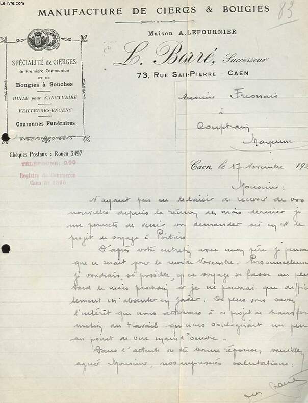 ***. 1921. In-12. Broché. Bon état, Couv. convenable, Dos satisfaisant, Intérieur frais. 1 facture ancienne de 27 x 21 cm. Illustré d'un dessin en noir et blanc dans le coin supérieur gauche représentant deux médailles.. . . . Classification : 100-Affiches Publicitaires
