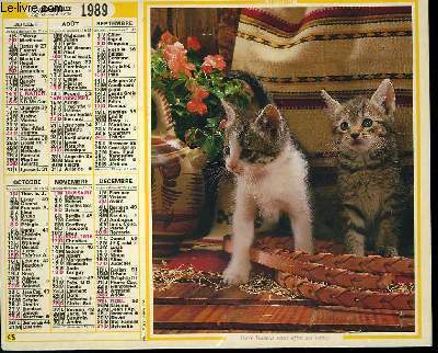 IMP. OBERTHUR. 1989. In-12. Broché. Bon état, Couv. convenable, Dos satisfaisant, Intérieur frais. 1 calendrier de 26,5 x 21 cm, de 24 pages, illustré d'une photo en couleurs différente suivant le coté. Support cartonné.Contenant Plan de Bordeaux ; Carte de la Gironde ;carte partielle de l'Europe ;Carte départementale et régionale;. . . . Classification : 400-Diplomes / Prix