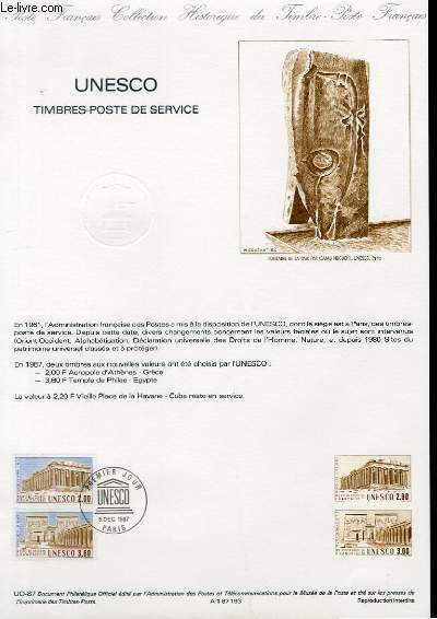 LA POSTE. 05-12-1987. In-12. Broché. Bon état, Couv. convenable, Dos satisfaisant, Intérieur frais. Document philatélique officiel de format 21 x 29,7 cm tiré sur Vélin pur chiffon d'Arches réalisé par l'administration des postes et télécommunication pour le musée postal. Il est composé d'un timbre original oblitéré du cachet premier jour, du texte de la notice officielle, de l'impression du poinçon original, d'une illustration gravée monochrome et d'une impression à sec de l'imprimerie du timbre.. . . . Classification : 20-Documents Philatéliques