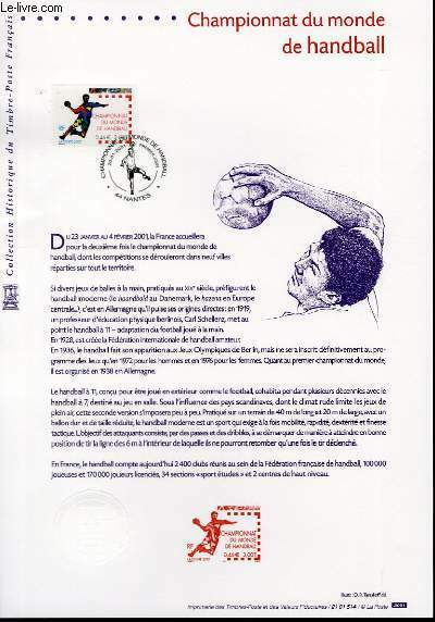 LA POSTE. 20-01-2001. In-12. Broché. Bon état, Couv. convenable, Dos satisfaisant, Intérieur frais. Document philatélique officiel de format 21 x 29,7 cm tiré sur Vélin pur chiffon d'Arches réalisé par l'administration des postes et télécommunication pour le musée postal. Il est composé d'un timbre original oblitéré du cachet premier jour, du texte de la notice officielle, de l'impression du poinçon original, d'une illustration gravée monochrome et d'une impression à sec de l'imprimerie du timbre.. . . . Classification : 20-Documents Philatéliques