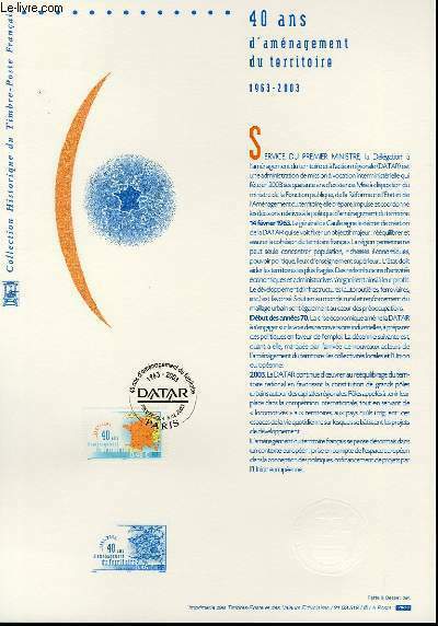 LA POSTE. 08-02-2003. In-12. Broché. Bon état, Couv. convenable, Dos satisfaisant, Intérieur frais. Document philatélique officiel de format 21 x 29,7 cm tiré sur Vélin pur chiffon d'Arches réalisé par l'administration des postes et télécommunication pour le musée postal. Il est composé d'un timbre original oblitéré du cachet premier jour, du texte de la notice officielle, de l'impression du poinçon original, d'une illustration gravée monochrome et d'une impression à sec de l'imprimerie du timbre.. . . . Classification : 20-Documents Philatéliques