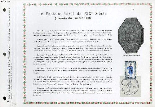EDITION PAC. 16-03-1968. In-12. Broché. Bon état, Couv. convenable, Dos satisfaisant, Intérieur frais. Feuillet artistique philatélique de format paysage 31,1 x 21,6 cm tiré sur papier épais glacé, édité par les éditions PAC. Il est composé d'un timbre original oblitéré du cachet premier jour, d'une illustration couleurs, d'une notice explicative.. . . . Classification : 20-Documents Philatéliques