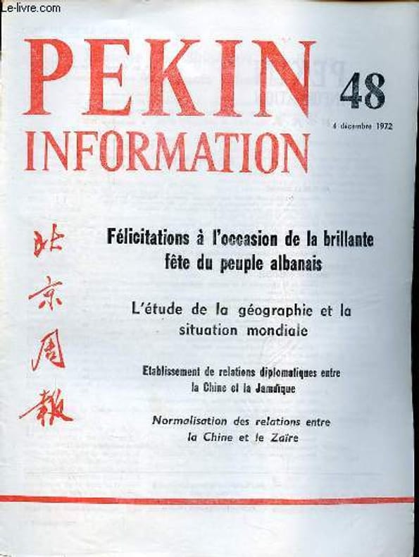 Pékin Information. 1972. In-4. Broché. Bon état, Couv. convenable, Dos satisfaisant, Intérieur frais. 23 pages agrafées - quelques photos en noir et blanc dans le texte - texte sur deux colonnes.. . . . Classification Dewey : 70.49-Presse illustrée, magazines, revues