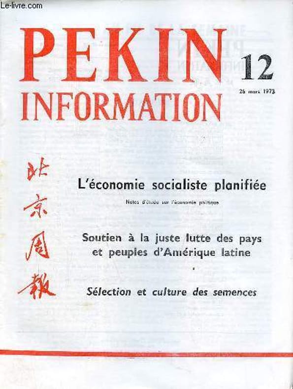 Pékin Information. 1973. In-4. Broché. Bon état, Couv. convenable, Dos satisfaisant, Intérieur frais. 23 pages agrafées - quelques photos en noir et blanc dans le texte - texte sur deux colonnes.. . . . Classification Dewey : 70.49-Presse illustrée, magazines, revues