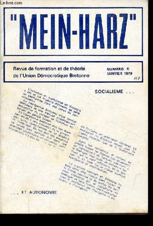 Sommaire : Autonomie et socialisme : autonomie ou socialisme par J.J.Monnier, pour l'autonomie de la Bretagne par R.Le Guellec, un socialisme aux couleurs de la Bretagne par A.Gweguen et Y.K.Pannetier - récréation réponse à un article du n°5 par Y.Le Floc'h. Classification Dewey : 70.49-Presse illustrée, magazines, revues
