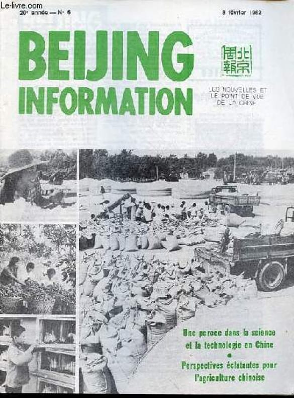 Beijing Information. 1982. In-4. Broché. Bon état, Couv. convenable, Dos satisfaisant, Intérieur frais. 30 pages agrafées - nombreuses illustrations en noir et blanc dans le texte.. . . . Classification Dewey : 70.49-Presse illustrée, magazines, revues