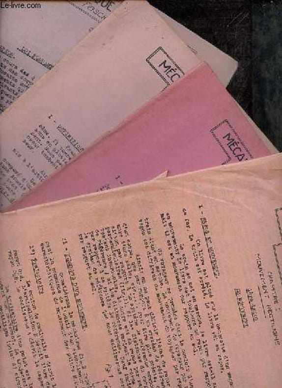 Mouvement rectiligne - forces concourantes - forces paralleles - centres de gravité - machines simples - dynamique etc. Classification Dewey : 600-TECHNIQUE (SCIENCES APPLIQUEES)