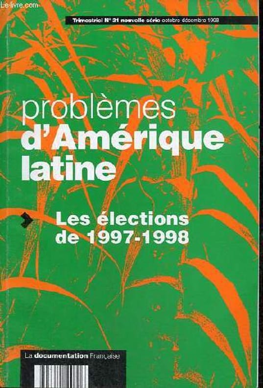 Sommaire : Le Brésil après la réélection de F.H.Cardoso, Dominique Vidal - Colombie : les élections de 1997-1998 entre changement et continuité, Elisabeth Ungar Bleier - Paraguay mai 1998 : des élections en trompe l'oeil, Renée Fregosi - Equateur : l'élection présidentielle de 1998, le retour à la norme démocratique ? Julie Massal - Chili : les élections parlementaires du 11 décembre 1997, Sophie Jouineau - République dominicaine : élections et démocratie 1962-1998, C.Dore, L.Faxas, C.Segura - Argentine : les élections de 1996 et 1997, S.Sigal. Classification Dewey : 70.49-Presse illustrée, magazines, revues