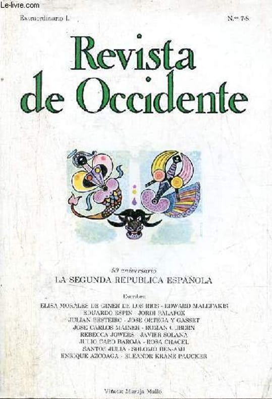 Sommaire : 50 aniversario la segunda republica espanola - La proclamacion, Elisa Morales de Giner de los Rios - peculiaridad de la republica espanola , Edward Malefakis - el panorama militar, Eduardo Espin - la crisis economica, Jordi Palafox - el marxismo y la actualidad politica, Julian Besteiro - hay que cambiar de signo a la republica, José Ortega y Gasset - los gustos culturales, José Carlos Mainer - el cine y sus mitos, Roman Gubern - las revistas literarias, Rebecca Jowers - protagonistas de la ciencia, Javier Solana - la republica en anécdotas o mas que anécdotas ? Julio Caro Baroja - pensabamos entonces, Rosa Chacel - el fracaso de la republica, Santos Julia - el debate republicano en los libros, Shlomo Ben Ami - las misiones pedagogicas, Enrique Azcoaga - cinco anos de misiones, Eleanor Krane Paucker. Classification Dewey : 460-Langues espagnole et portugaise