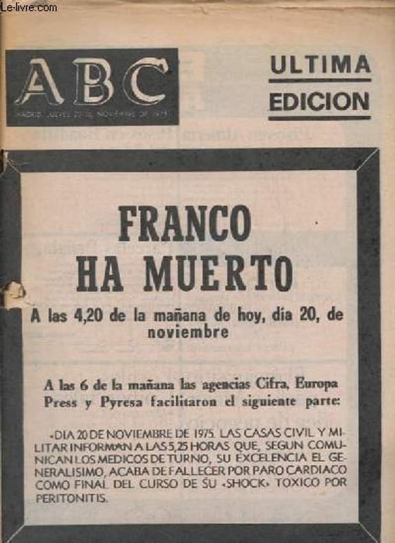 Sommaire : Franco ha muerto a las 4,20 de la manana de hoy dia 20 de noviembre - recuerdo y fidelidad - ayer en la paz - ayer finalizo el pleno de las cortes - mensaje en unos dibujos - mentidero de la villa - la ley de residuos solidos urbanos aprobada por unanimidad - oriol : este pleno ha sido una muestra magnifica de serenidad - manana comienza a reconstruirse el palacio de palhava - convenio entre la universidad nacional a distancia y las fuerzas armadas - proyecto de autonomia legislativa para escocia y gales - clima de golpe de estado permanente en portugal - el parlamento prescinde de la oposicion del gobierno a que se investiguen los fraudes - varios pueblos de la provincia de la coruna no tienen luz electrica etc. Classification Dewey : 460-Langues espagnole et portugaise