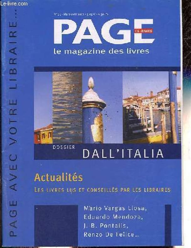 Sommaire : Mario Vargas Llosa, la fête au bouc par Gérard de Cortanze - les lundis de page - rencontre entre J.B.Pontalis et Emmanuel Favre - chronique de Françoise Xenakis - Eduardo Mendoza l'artiste des dames - chronique bd par Dominique Dupuis - Renzo de Felice, brève histoire du fascisme - entretien avec Sylvie Angel (mieux vivre, mode d'emploi) - jeunesse - chronique les classiques par Jean Marie Laclavetine - dossier : dall'italia. Classification Dewey : 70.49-Presse illustrée, magazines, revues