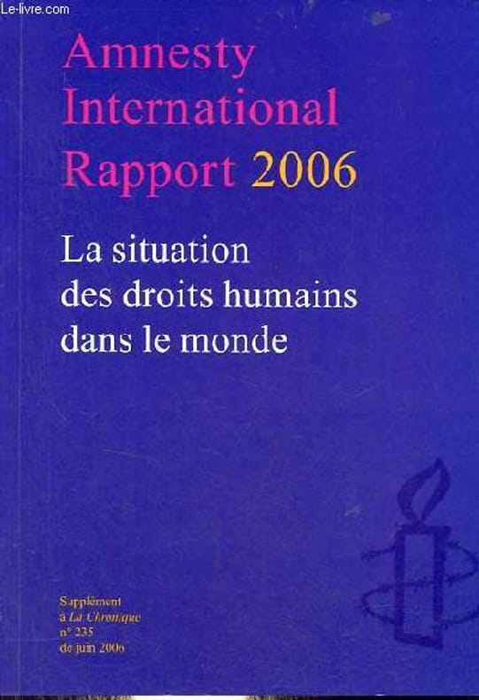 Amnesty International éditions francophones. 2006. In-8. Broché. Bon état, Couv. convenable, Dos satisfaisant, Intérieur frais. 417 pages - texte sur deux colonnes - quelques photos en noir et blanc dans le texte.. . . . Classification Dewey : 340-Droit