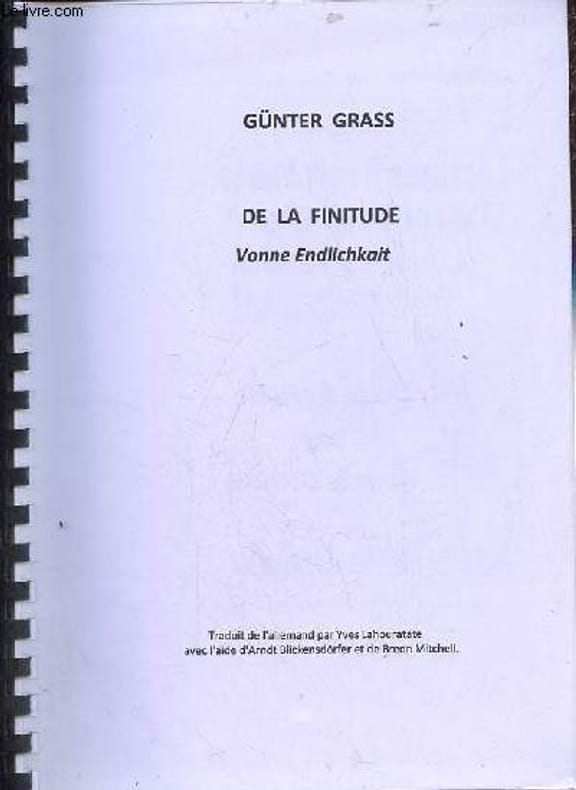 Traduit de l'allemand par Yves Lahouratate avec l'aide d'Arndt Blickensdörfer et de Breon Mitchell. Classification Dewey : 830-Littératures des langues germaniques
