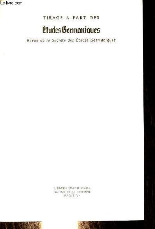 Marcel Didier. non daté. In-8. Broché. Bon état, Couv. convenable, Dos satisfaisant, Intérieur frais. Tiré à part paginé de 332 à 342.. . . . Classification Dewey : 830-Littératures des langues germaniques