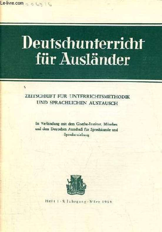 Sommaire : Neure arbeiten zur literaturgeschichte und dichterbiographie, G.Weydt - neue akustische Hilfsmittel fur den deutschunterricht, A.Littmann - vor welche probleme und aufgaben stellt uns der deutsche sprachunterricht in brasilien? , H.Mueller - der gebrauch der deutschen praposition, W.Schmitz - der deutschunterricht fur auslander, H.Jappe - uber die zweisprachigkeit in Chile - aus der arbeit des goethe-instituts - bucherschau - kleine chronik. Classification Dewey : 430-Langues germaniques. Allemand