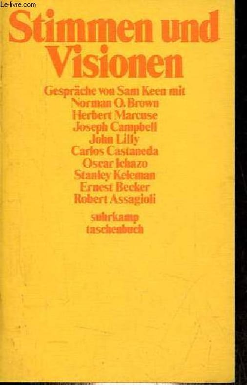 Sammlung suhrkamp taschenbuch n°545 - Gespräche von Sam Keen mit Norman O.Brown, Herbert Marcuse, Joseph Campbell, John Lilly, Carlos Castaneda, Oscar Ichazo, Stanley Keleman, Ernest Becker, Roberto Assagioli - Aus dem amerikanischen von Dora Fischer-Barnicol. Classification Dewey : 430-Langues germaniques. Allemand