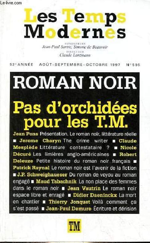 Sommaire : Roman noir pas d'orchidées pour les T.M. - Jean Pons, le roman noir, littérature réelle - Jerome Charyn, the crime writter - Claude Mesplède, le roman noir américain, littérature contestataire ? - Nicole Décuré, les limières anglo américaines - Robert Deleuse, petite histoire du roman noir français - Patrick Raynal, le roman noir et l'avenir de la fiction - J.P.Schweighaeuser, du roman de voyou au roman engagé - Maud Tabachnik, remarques sur la non place des femmes - Jean Vautrin, le roman noir, espace libre et enragé - Didier Daeninckx, la mort en chantier - Thierry Jonquet, voila comment ça s'est passé - Jean Paul Demure, écriture et dérision etc. Classification Dewey : 70.49-Presse illustrée, magazines, revues