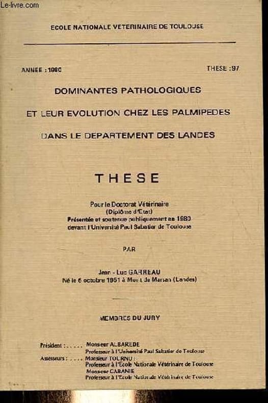 Ecole nationale veterinaire de Toulouse année 1980 these 97. Classification Dewey : 636.089-Art vétérinaire
