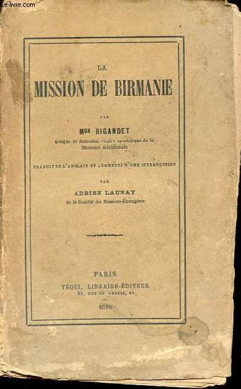 Mgr Bigandet était Evêque de Ramatha, Vicaire-Apostolique de la Birmanie Méridionale. Traduit de l'anglais et augmenté d'une traduction par Adrien de Launay, Père des Missions Etrangères. Peu courant.