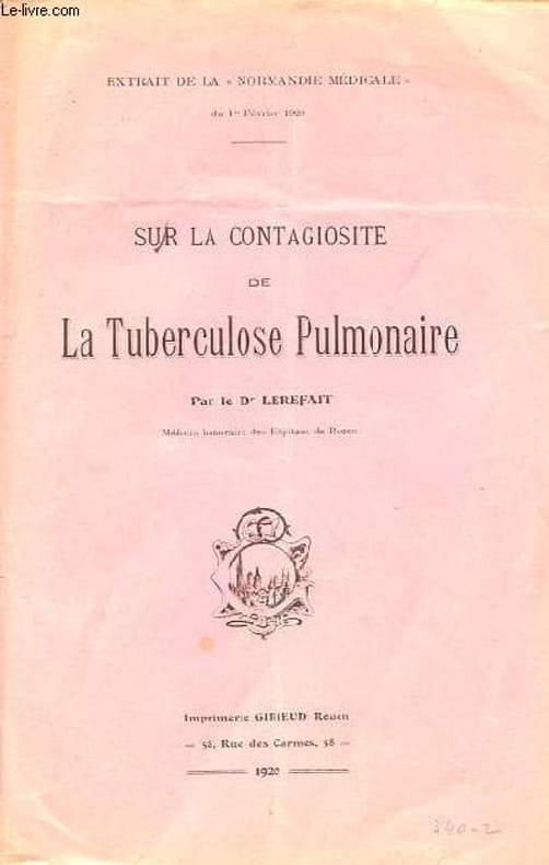 Imprimerie Girieud. 1920. In-8. Broché. Etat d'usage, Couv. légèrement passée, Dos satisfaisant, Pliures. 8 pages agrafées - papier jauni - petite trace d'encre sur le 1er plat.. . . . Classification Dewey : 616.2-Maladies respiratoires