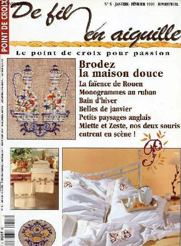 Sommaire : Points noués et rubans - bain d'hiver - autour de la faïence de Rouen idéal pour débutants - une serviette bien à soi idéal pour débutants - le charme discret des anémones - chambre avec vue la campagne anglaise - la petite semeuse - belles de janvier idéal pour débutants - range ta chambre ! - miette et zeste. Classification Dewey : 646-Couture, confection de vêtements, vie personnelle et familiale à la maison