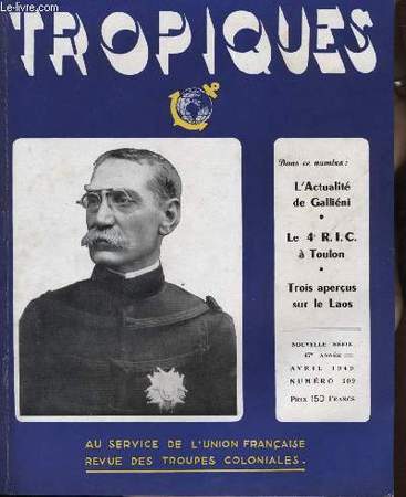 "L'actualité de Galliéni par CHARBONNEAU ; A propos du Quatre : Le drapeau du 4è R.I.C. par BOURGUND, Toulon 44 par le CAPITAINE X , Quand le ""Quatre revient des Iles ou Le miracle du bleu-marine par DOZE ; L'Angola portugais ; Marie-madeleine O'Connell par BARTHOLISABAD ; Trois aperçu sur le Laos : Le teck de Paklay par COINDAT, Un cour d'amour au Laos par Thao Viboum, Essai de phychologie du chasseur laotien par CAPITAINE D'ERCUEILLE ; Nouvelles de l'Union Française ; Le Général de divison Borgnis-Desbordes ; Nouvelles de l'Arme ; Nos deuils ; Biblographie Classification Dewey : 900-GEOGRAPHIE, HISTOIRE, SCIENCES AUXILIAIRES DE L'HISTOIRE"