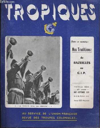 "Bazeilles par CAPITAINE COGNIET ; Le musés de traditions des troupes coloniales par S.E.I.T.C. ; Histoire de la ""revue des troupes coloniales"" par S.E.I.T.C. ; L'almanach du Marsouin par Le Cdt CHAILLEY ; Gestes sublimes ; Le C.I.P. par HERAL ; Le mot du colonel ; Hymne de l'Infanterie de Marine ; Nouvelles de l'Arme ; L'hommage à marchand par M.C. ; Bibliographie ; Partie oficielle Classification Dewey : 900-GEOGRAPHIE, HISTOIRE, SCIENCES AUXILIAIRES DE L'HISTOIRE"