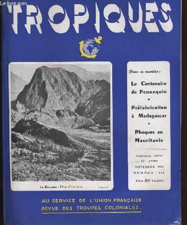 "A propos du centnaire Pennequin ; Une province française d'outre-mer : la Réunion par BARQUISSAU ; L'opération ""ONDINE"" ; Commentaires sur les accords Bao-Daï par CASSEVILLE ; Les phoques en Afrique occidentale par BERGERS ; Préfabriacaions à madagascar par RANCUREL ; Considérations sur le 36è salon de l'automobile S.E.I.T.C. ; L'exposititon pour l'équipement de l'Union Française par J.A.H. ; Le 1er Bataillon du 21è Régiment d'Infanterie Coloniale à la cité Sainte-Barbe ; Nouvelles de l'arme et de l'union. Classification Dewey : 900-GEOGRAPHIE, HISTOIRE, SCIENCES AUXILIAIRES DE L'HISTOIRE"