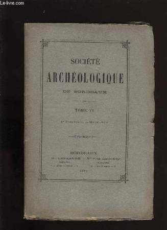 Extraits des comtes-rendus des séances de la société archéologique de Bordeaux par PUIFFERAT ; Bronze Gallo-Romain trouvé à Bordeaux, Statue de mabre trouvée au Mas-d'Agenais par COLLIGNON ; Notes sur quelques découvertes archéologiques dans les communes de la gironde riveraines de la Dordogne par GAULLIEUR ; Légende sur la Fontaine des fées ou Fons-Galline par DALEAU ; Station préhistorique à Villegouge (Gironde) et Villa romaine à Saint-Georges de Didone (Charente-Inférieure) par DELPIT ; L'amphithéatre de Gallien par DEZIMERIS ; Excursions aux dolmens de la Saussaye et à l'Abbaye de Trizay, canton de St-Porchaire par MAUFRAS ; Les fouilles exécutés à bordeaux de 1863 à 1876 par SANSAS ; Notice sur les anciennes tours de l'hotel de ville de Bordeaux par TAPIAU. Classification Dewey : 908.447-Régionalisme : Aquitaine
