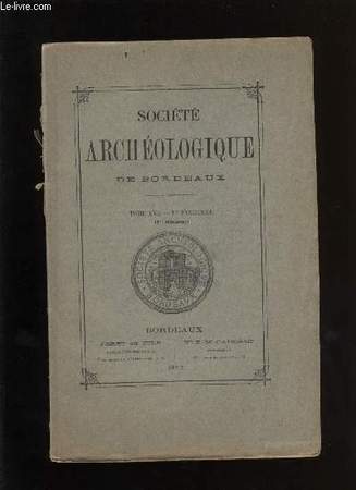 Les anciens bureaux de la Société ; Encore Saint- Jean de Sagignac (Médoc) par BERCHON ; Plaque de consécration de l'Eglise des Capucins de Beauveais (oise) par le cardial de Sourdis par CARRERE ET BERCHON ; Inventaire de l'Age de Bronze en Gironde par BERCHON ; Congrés de la société savantes à la Sarbonne Congrès de la Société savantes à la Sarbonne ; L'exposition universelle de Chicago. Classification Dewey : 908.447-Régionalisme : Aquitaine