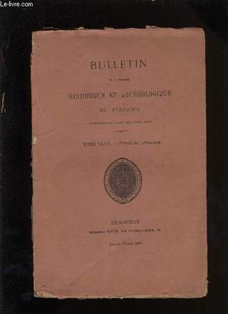 Fouilles de Vésonne : Fragments de peintre murale poar DURAND ; Les Bastides en Périgord et les Rôles Gascons par VIGIE ; Notes archéologiques : Travaux à la cathédrale de Sarlat au XVIe siècle par LAVERGNE ; Incarcération et mise en liberté de Merlhie-Lagrange par RAMEFORT. Classification Dewey : 908.447-Régionalisme : Aquitaine