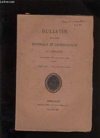 Un grand procès périgourdin au XVIesiècle par VIVANT et DE BOYSSON ; Les comtes de Périgord et leur domaine au XIVe siècle (suite) par AVEZOU. Classification Dewey : 908.447-Régionalisme : Aquitaine