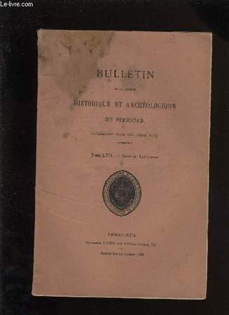 Adjonction au cartulaire de Cadouin par MARBOURET ; Quelques épisodes de 1815 en Dordogne (suite et fin) par VILLEPELET ; Le pont du Charlard sur la Dronne par DUSOLIER ; Le régime des suspects dans les maisons d'arrêt de Ribérac pendant la terreure par DUBUT. Classification Dewey : 908.447-Régionalisme : Aquitaine