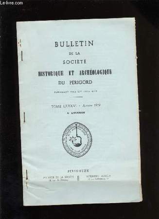 BULLETIN DE LA SOCIETE HISTORIQUE ET ARCHEOLOGIQUE DU PERIGORD. 1959. In-8. Broché. Bon état, Couv. convenable, Dos satisfaisant, Intérieur frais. 28 pages agrafées - quelques illustrations en noir et blanc dans le texte.. . . . Classification Dewey : 908.447-Régionalisme : Aquitaine