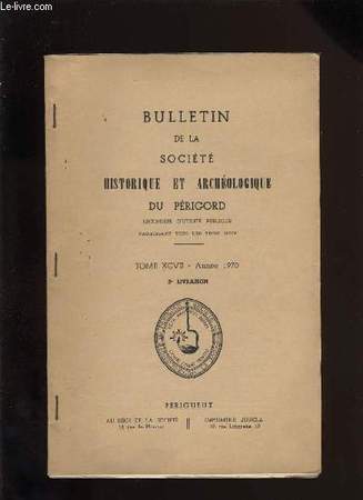 "Inventaire de l'iconothèse de la Socité historique et archéologique du Périgord (suite et fin) par SECRET ; La chatellenire et les seigneurs de Montcuq (suite) par MARSAC ; Curés et vicaire du diocèse de Périgueux en 1692 (suite et fin) par BECQUART ; La charpente e l'ancienne Abbaye de Brantôme par PONCEAU ; Lettre de J.B.L. Pellissier de Barry à la marquise de Cosnac par SECRET ; La ""dinastieé des Rey, médecins ou Bugue par SADOUILLET-PERRIN. Classification Dewey : 908.447-Régionalisme : Aquitaine"