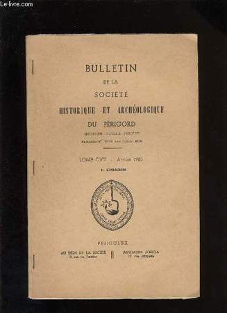 Bêtes, démons et fous du cloître de Cadouin par LES DELLUC ; Les abjurations dans les paroisses de la Cone et de Gabanelle de 1679 à 1687 par VALETTE ; Sur les bustes-reliquaires de Saint-Romain près Thiviers et d'Excideuil par SECRET ; Quelques musciens et gagistes à la veille de la Révolution dans les églises du Périgord par BECQUART ; Note sur la famille d'Eugène Le Roy par GOUMET. Classification Dewey : 908.447-Régionalisme : Aquitaine