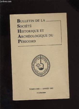 Imprimerie Joucla. 1985. In-12. Broché. Bon état, Couv. convenable, Dos satisfaisant, Intérieur frais. 82 pages environUne lampe de Lascaux façonnée en calcaire par LES DELUC ; Les calamités d'un épidémi à Domme au XVIIe siècle et ses suites par LA CHAPELLE) Saint-Martin de Bergerac, histoire d'un prieuré bénédictin par IGNACE et LABORIE ; Wlgrin de taillefer : Utopie et urbanisme à Périgueux au début du XIXe siècle par LACOMBE ; Les débuts de la radiologie à Périgueux en secteur privé par DUVERGER.. . . . Classification Dewey : 908.447-Régionalisme : Aquitaine