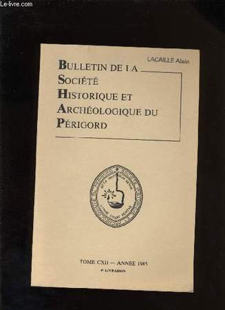 Une lampe de Lascaux façonnée en calcaire par LES DELUC ; Les calamités d'un épidémi à Domme au XVIIe siècle et ses suites par LA CHAPELLE) Saint-Martin de Bergerac, histoire d'un prieuré bénédictin par IGNACE et LABORIE ; Wlgrin de taillefer : Utopie et urbanisme à Périgueux au début du XIXe siècle par LACOMBE ; Les débuts de la radiologie à Périgueux en secteur privé par DUVERGER. Classification Dewey : 908.447-Régionalisme : Aquitaine